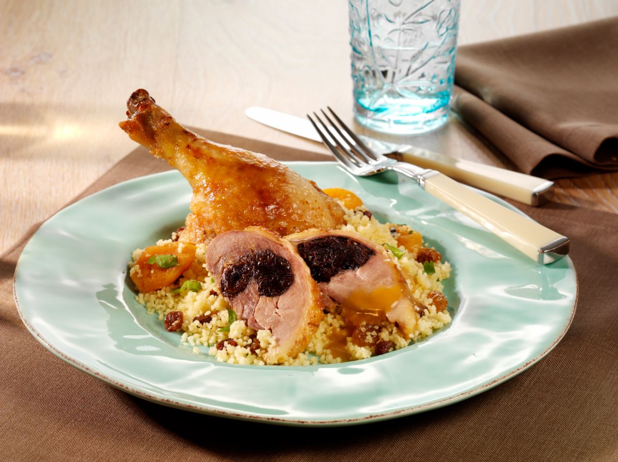 Entenkeule mit Honig-Zimt-Glasur auf fruchtigem Couscous